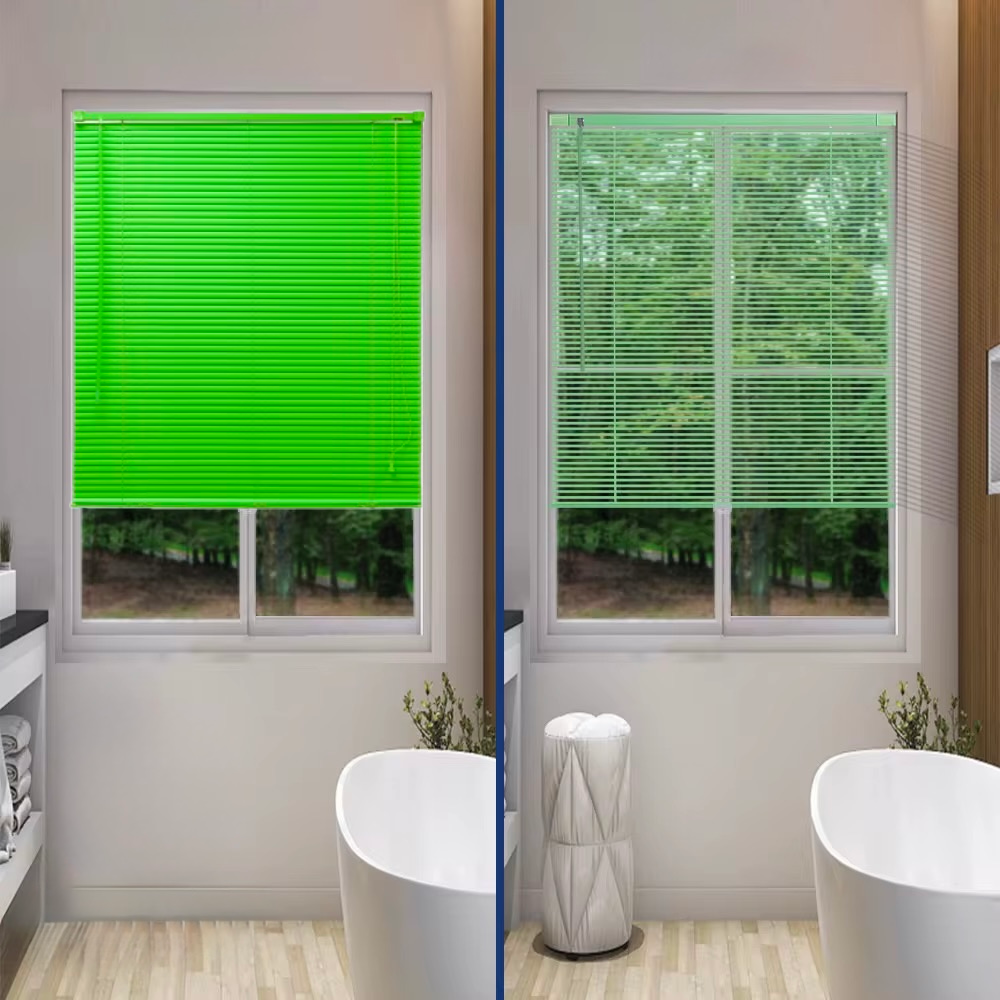 Persiana veneciana de vinilo con láminas de 25 mm, flexibles y resistentes. Su diseño práctico y versátil la hace ideal para cocinas, baños, espacios juveniles y decoraciones informales.