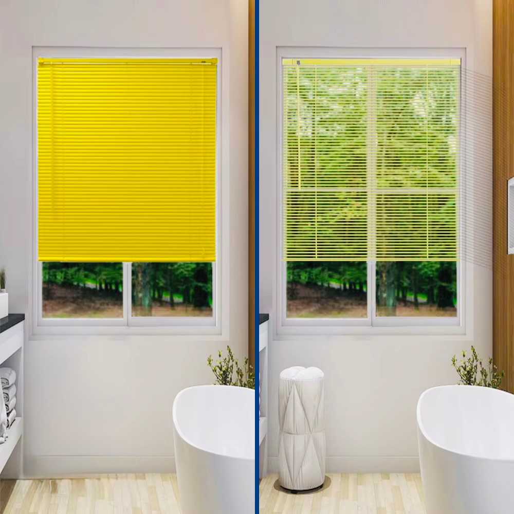 Persiana veneciana de vinilo con láminas de 25 mm, flexibles y resistentes. Su diseño práctico y versátil la hace ideal para cocinas, baños, espacios juveniles y decoraciones informales.